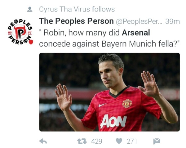 TWITTER CAME IN LIVE FOR ARSENAL AND ARSENAL FANS AFTER 10-2 (AGG) LOSS TO BAYERN MUNICH.